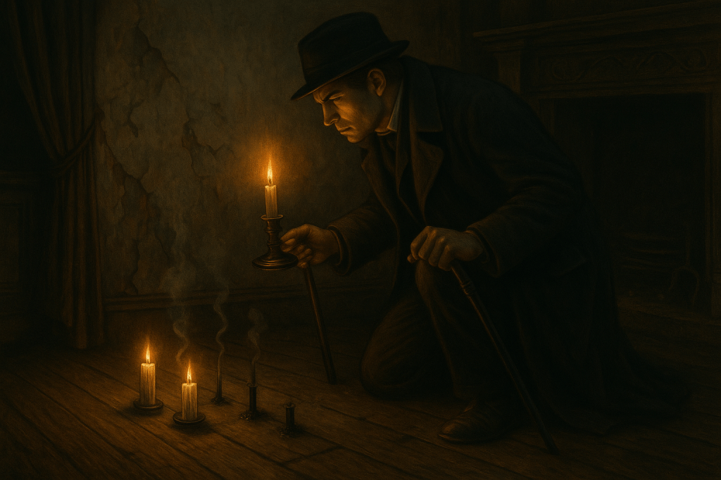 La cera non era sciolta. Lo stoppino integro. Eppure, una dopo l’altra, le fiamme cadevano come abbattute da un soffio invisibile.”