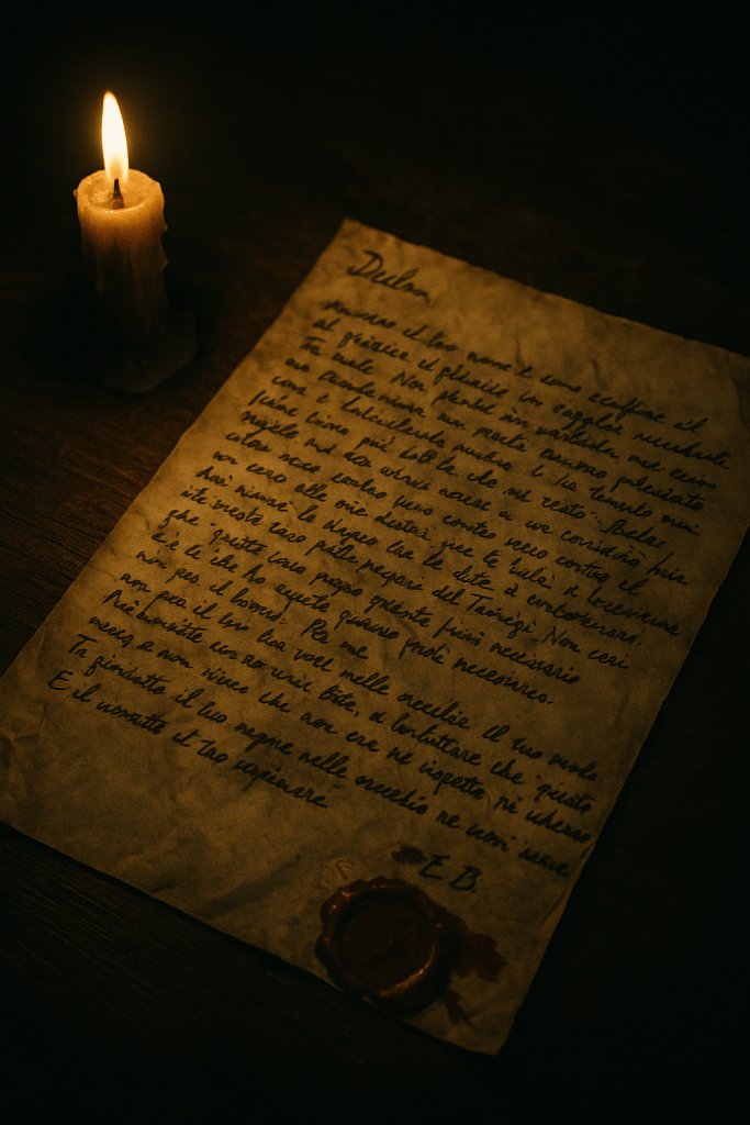 Richiuse la finestra. Posò la Lettera Nera sulla scrivania come si posano le cose che non si devono far cadere. Guardò in giro, non cercando indizi ma assenze. La stanza restava com’era. Eppure non com’era. Una nota bassa nella struttura della casa, un accordo lontano che non si udiva ma si riconosceva. Si costrinse a respirare lento. Ogni indizio prende una forma se non lo insegui.
